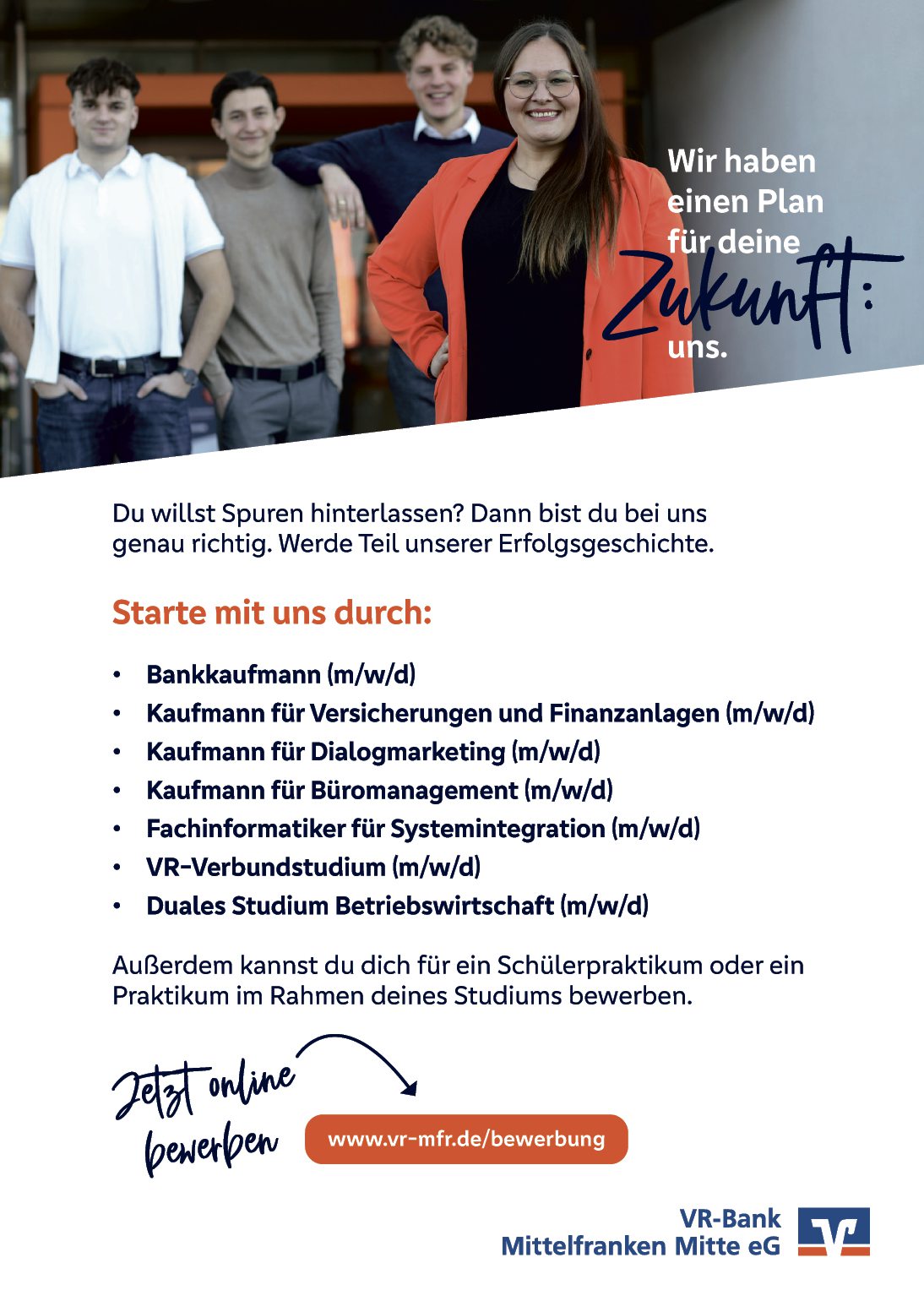 Jetzt online bewerben www.vr-mfr.de/bewerbung