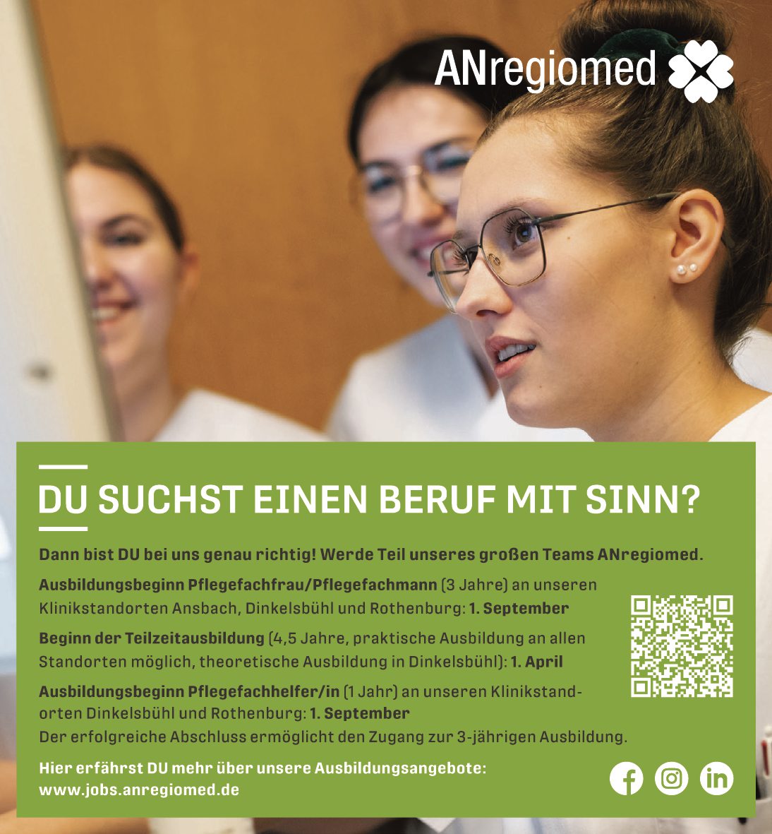 Hier erfährst DU mehr über unsere Ausbildungsangebote: www.jobs.anregiomed.de