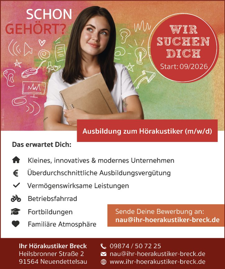 Sende Deine Bewerbung an: nau@ihr-hoerakustiker-breck.de