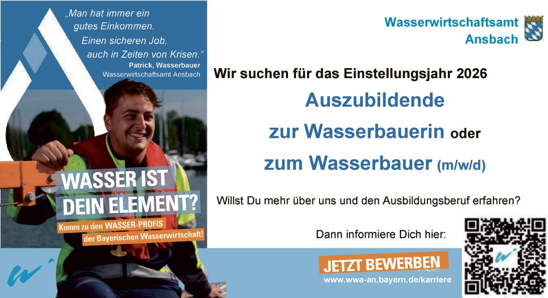 Dann informiere Dich hier: www.wwa-an.bayern.de/karriere