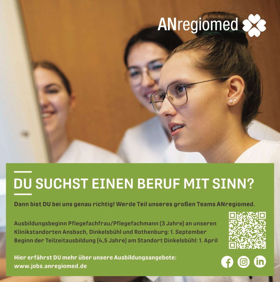 Hier erfährst DU mehr über unsere Ausbildungsangebote: www.jobs.anregiomed.de