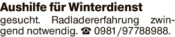Aushilfe für Winterdienst gesucht. Radladererfahrung zwingend notwendig.