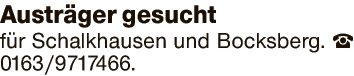 Austräger gesucht für Schalkhausen und Bocksberg.