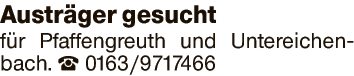 Austräger gesucht für Pfaffengreuth und Untereichenbach.