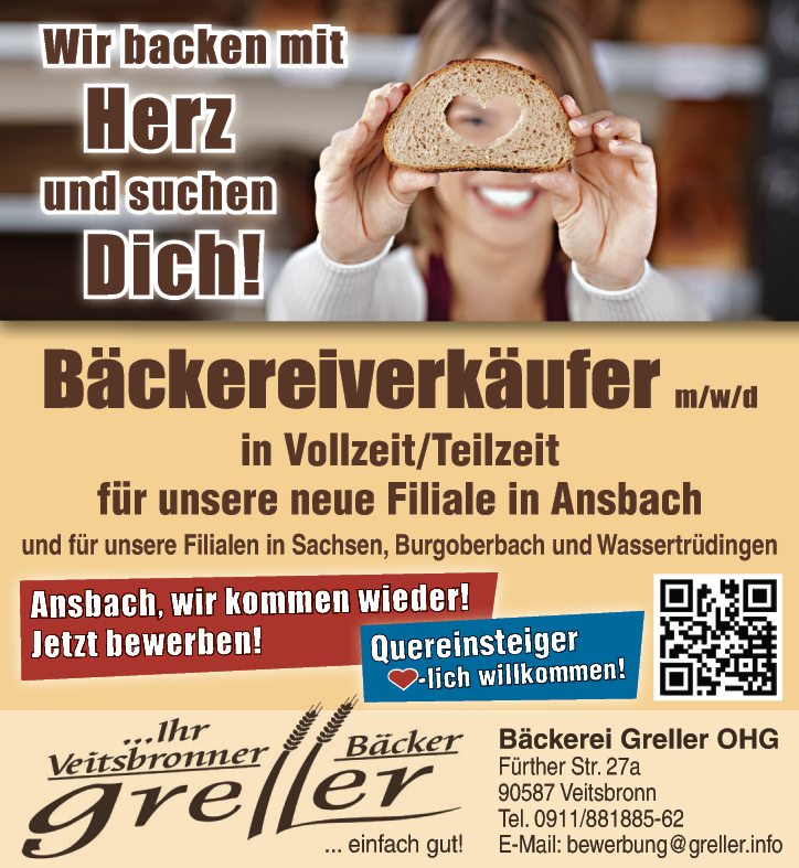 in Vollzeit/Teilzeit für unsere neue Filiale in Ansbach und für unsere Filialen in Sachsen, Burgoberbach und Wassertrüdingen