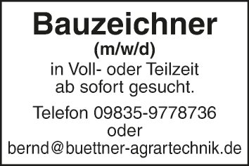 Telefon 09835-9778736 oder bernd@buettner-agrartechnik.de