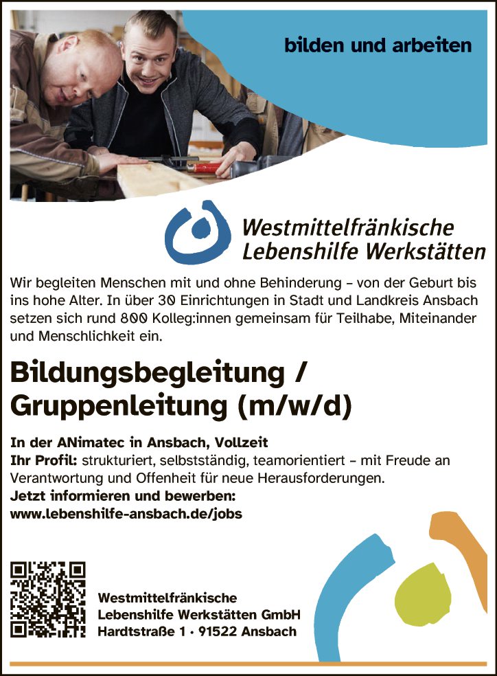Jetzt informieren und bewerben: www.lebenshilfe-ansbach.de/jobs