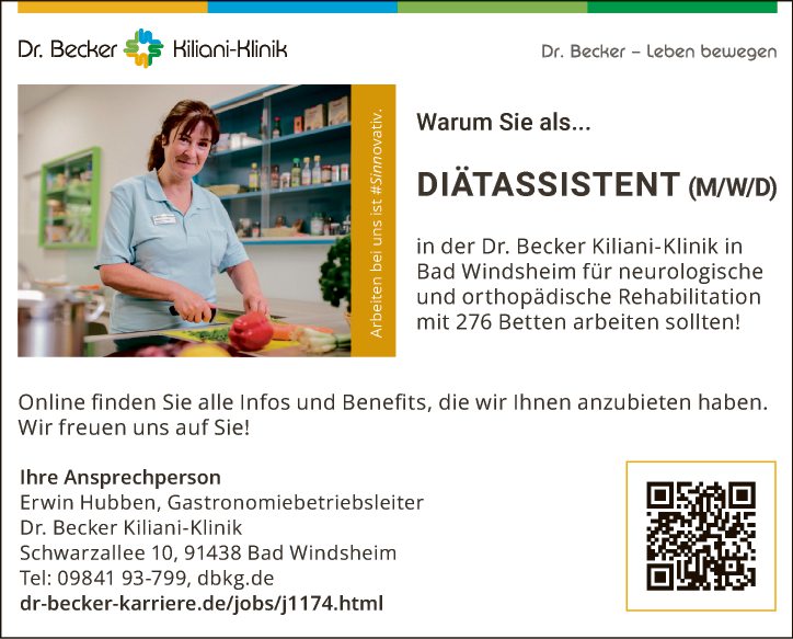 in der Dr. Becker Kiliani-Klinik in Bad Windsheim für neurologische und orthopädische Rehabilitation mit 276 Betten arbeiten sollten!