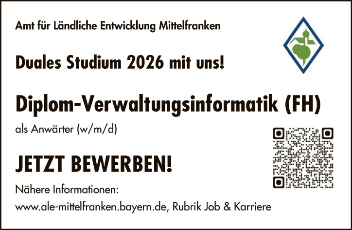 Nähere Informationen: www.ale-mittelfranken.bayern.de, Rubrik Job & Karriere