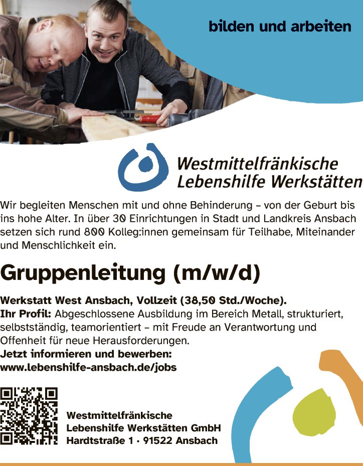 Jetzt informieren und bewerben: www.lebenshilfe-ansbach.de/jobs