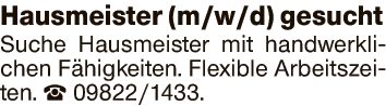 Suche Hausmeister mit handwerklichen Fähigkeiten.