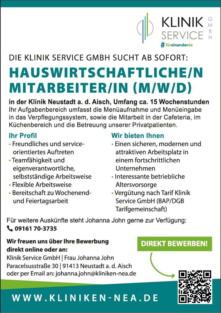 in der Klinik Neustadt a. d. Aisch, Umfang ca. 15 Wochenstunden