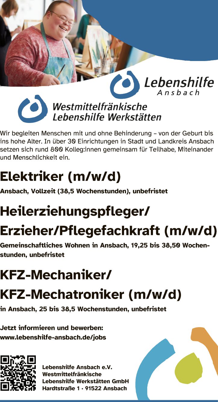 Jetzt informieren und bewerben: www.lebenshilfe-ansbach.de/jobs