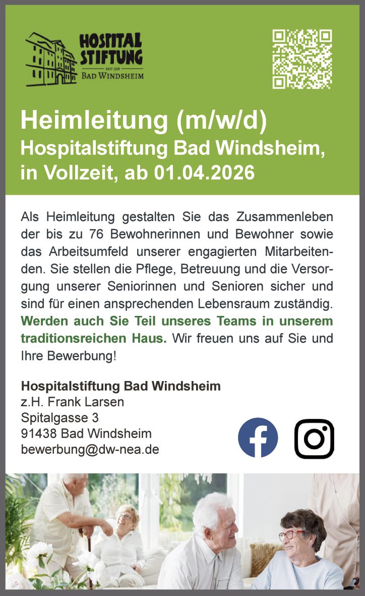 Hospitalstiftung Bad Windsheim, in Vollzeit, ab 01.04.2026