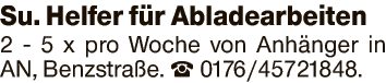 Su. Helfer für Abladearbeiten 2 - 5 x pro Woche von Anhänger in AN, Benzstraße.