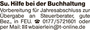Su. Hilfe bei der Buchhaltung Vorbereitung fĂźr Jahresabschluss zur Ăbergabe an Steuerberater, gute Bez., in FEU.