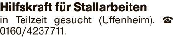 Hilfskraft für Stallarbeiten in Teilzeit gesucht (Uffenheim).