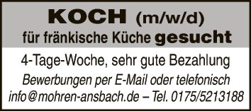 KOCH (m/w/d) für fränkische Küche gesucht.