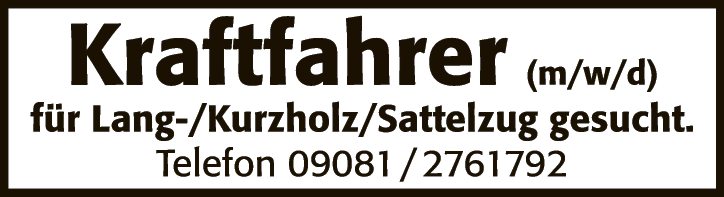 Kraftfahrer (m/w/d) fĂŒr Lang-/Kurzholz/Sattelzug gesucht.