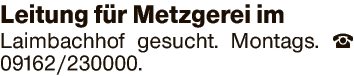 Leitung für Metzgerei im Laimbachhof gesucht.