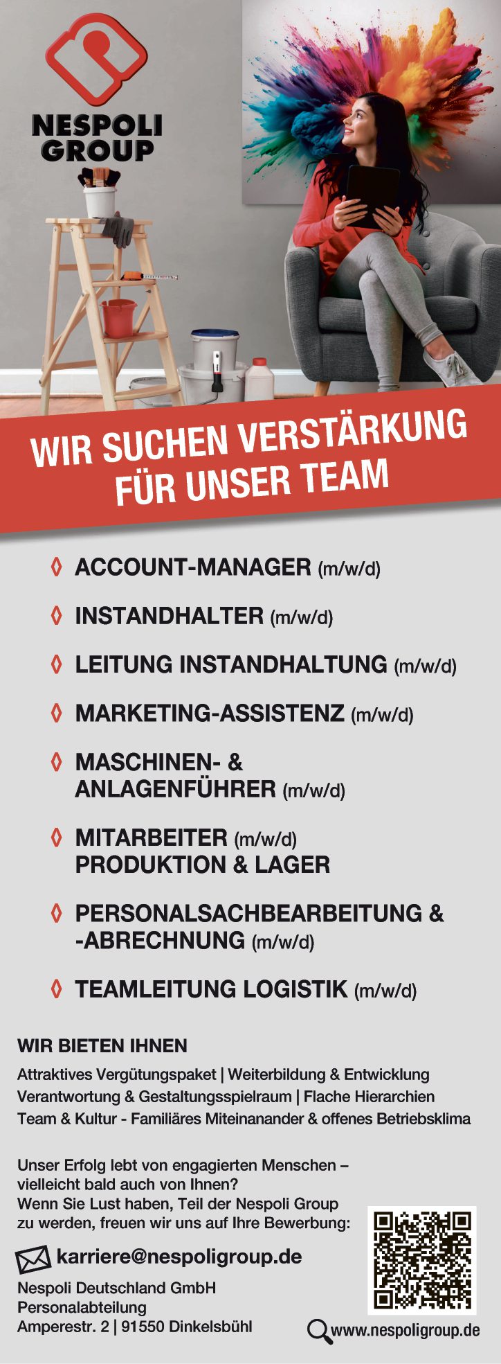 Wenn Sie Lust haben, Teil der Nespoli Group zu werden, freuen wir uns auf Ihre Bewerbung: karriere@nespoligroup.de