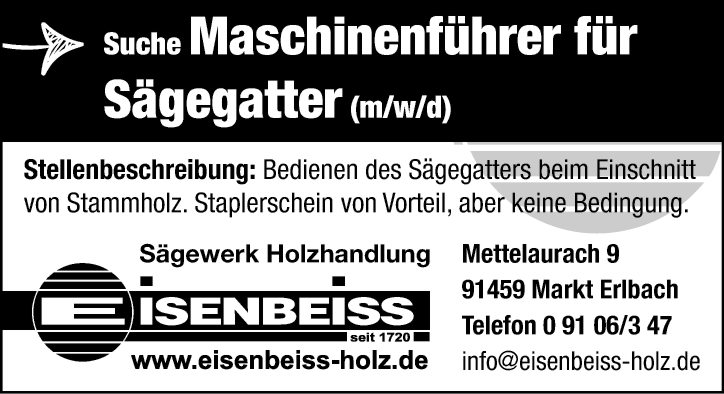 Suche Maschinenführer für Sägegatter (m/w/d).