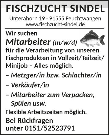 Wir suchen Mitarbeiter (m/w/d) für die Verarbeitung von unseren Fischprodukten in Vollzeit/Teilzeit/Minijob – Alles möglich.