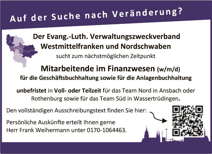 Der Evang.-Luth. Verwaltungszweckverband Westmittelfranken und Nordschwaben sucht zum nächstmöglichen Zeitpunkt