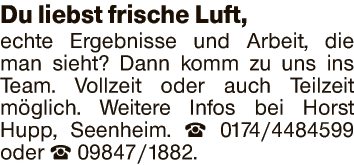 Du liebst frische Luft, echte Ergebnisse und Arbeit, die man sieht? Dann komm zu uns ins Team. Vollzeit oder auch Teilzeit möglich.
