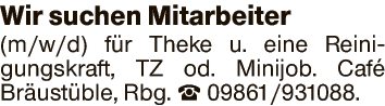 Wir suchen Mitarbeiter (m/w/d) für Theke.