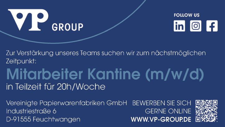 Zur VerstĂ€rkung unseres Teams suchen wir zum nĂ€chstmöglichen Zeitpunkt: Mitarbeiter Kantine (m/w/d) in Teilzeit fĂŒr 20h/Woche.