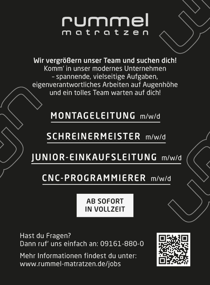 Mehr Informationen findest du unter: www.rummel-matratzen.de/jobs