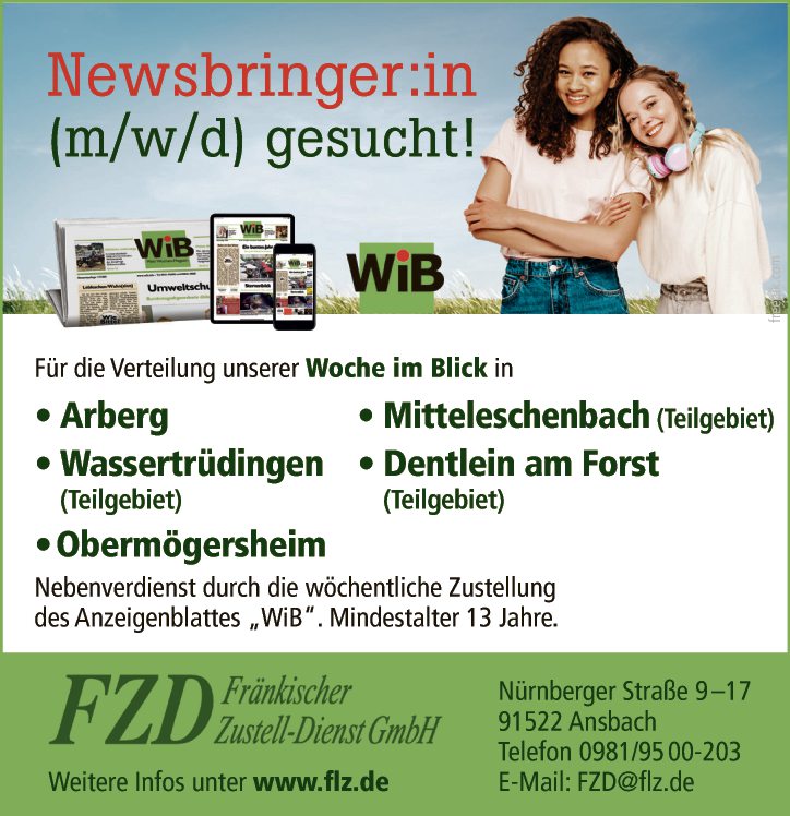 Nebenverdienst durch die wöchentliche Zustellung des Anzeigenblattes „WiB“. Mindestalter 13 Jahre.