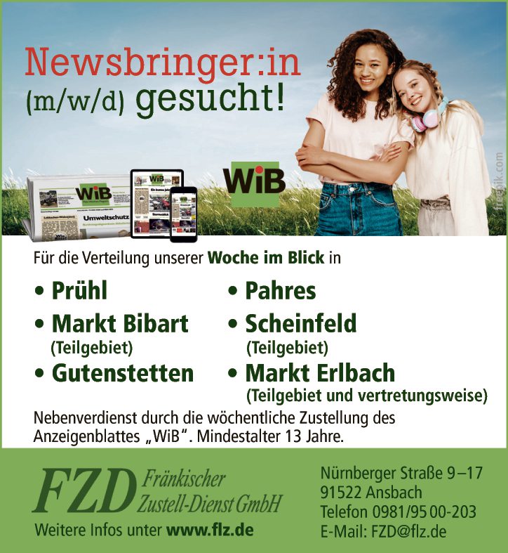 Nebenverdienst durch die wöchentliche Zustellung des Anzeigenblattes „WiB“. Mindestalter 13 Jahre.