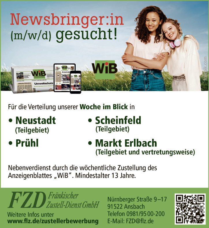 Nebenverdienst durch die wöchentliche Zustellung des Anzeigenblattes „WiB“. Mindestalter 13 Jahre.