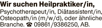 Wir suchen Osteopath/in (m/w/d) oder ähnliche Branche.