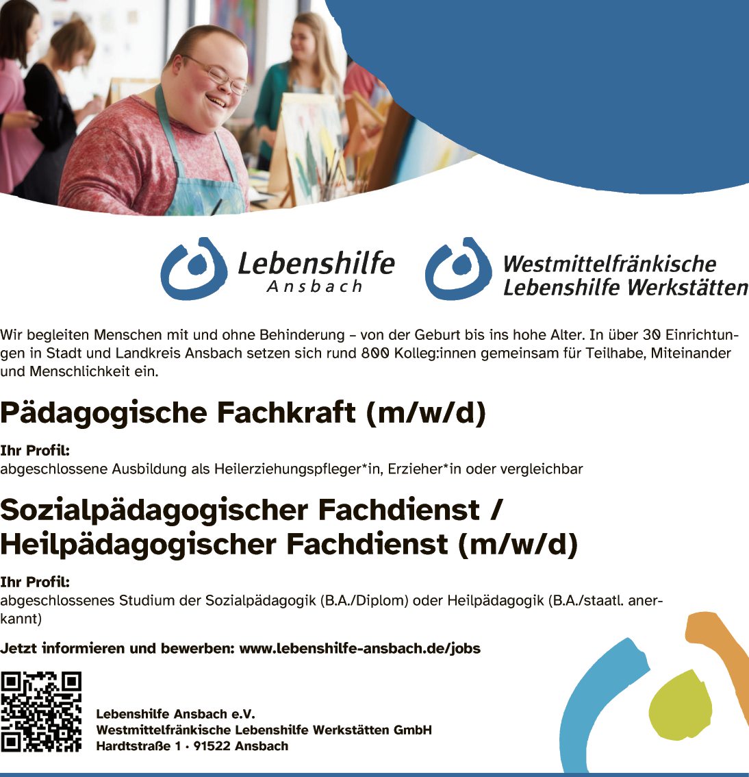 Jetzt informieren und bewerben: www.lebenshilfe-ansbach.de/jobs