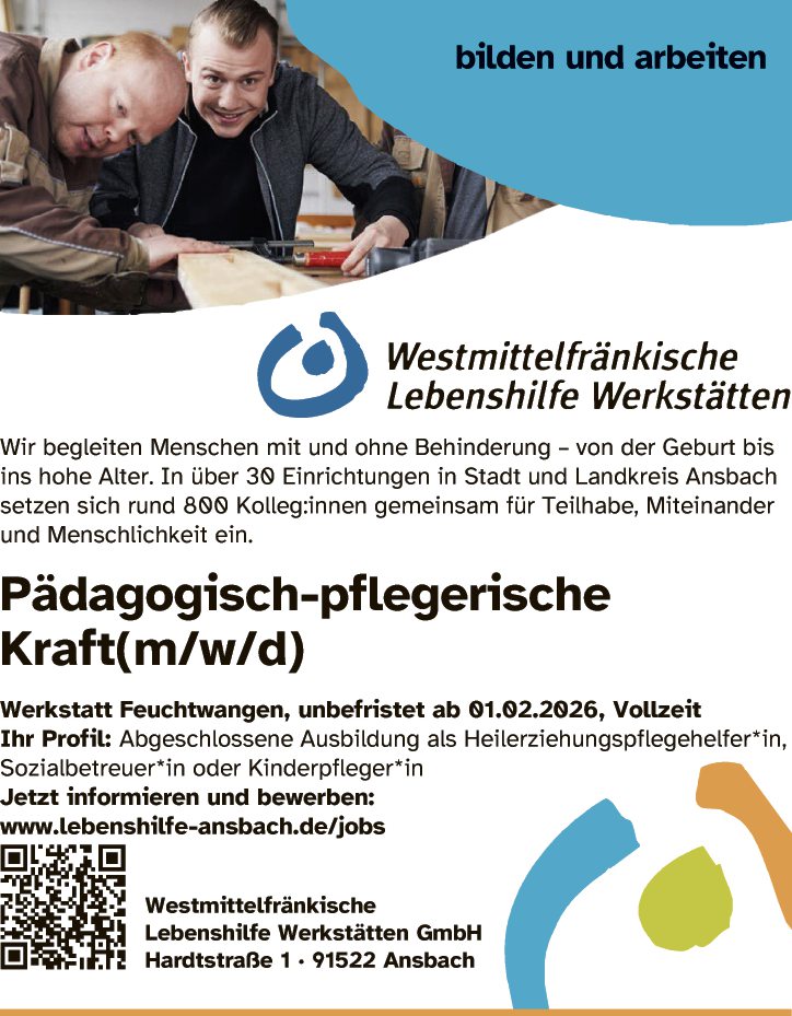 Jetzt informieren und bewerben: www.lebenshilfe-ansbach.de/jobs
