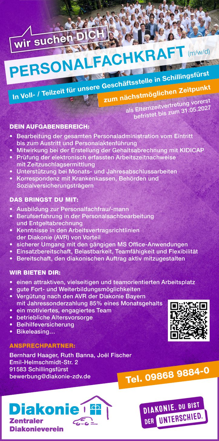 wir suchen DICH PERSONALFACHKRAFT (m/w/d) In Voll- /Teilzeit für unsere Geschäftsstelle in Schillingsfürst zum nächstmöglichen Zeitpunkt als Elternzeitvertretung vorerst befristet bis zum 31.05.2027.
