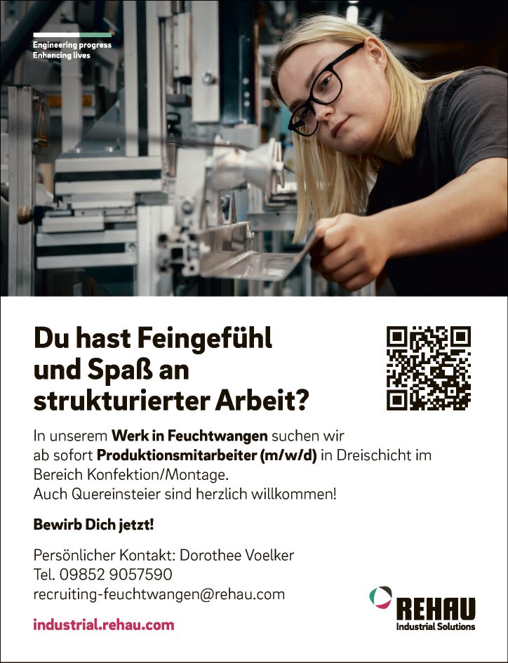Du hast FeingefĂźhl und SpaĂ an strukturierter Arbeit? In unserem Werk in Feuchtwangen suchen wir ab sofort Produktionsmitarbeiter (m/w/d).