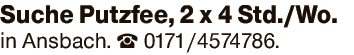 Suche Putzfee, 2 x 4 Std./Wo. in AN.