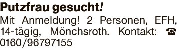 Putzfrau gesucht!