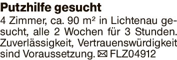 4 Zimmer, ca. 90 m2 in Lichtenau gesucht, alle 2 Wochen für 3 Stunden.