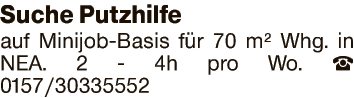 auf Minijob-Basis für 70 m2 Whg. in NEA. 2 - 4h pro Wo.