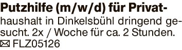 Putzhilfe (m/w/d) für Privathaushalt in Dinkelsbühl dringend gesucht.
