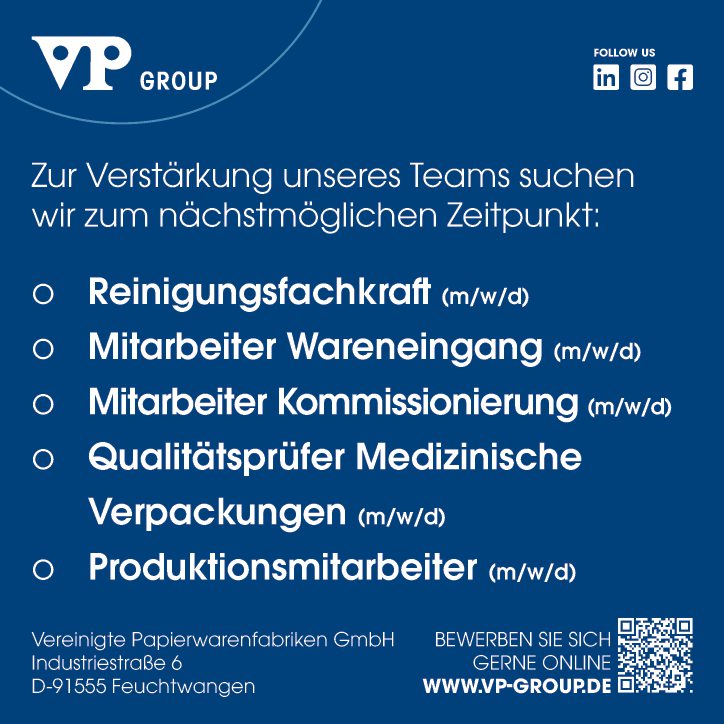BEWERBEN SIE SICH GERNE ONLINE WWW.VP-GROUP.DE