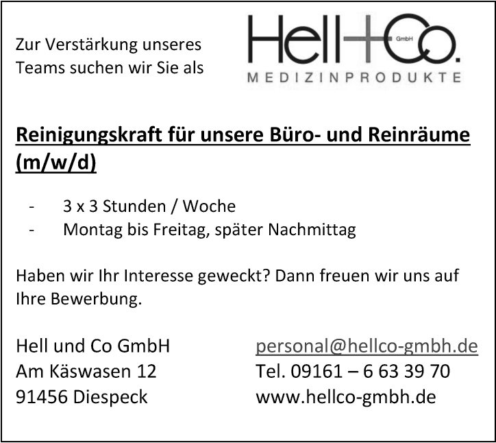 Zur Verstärkung unseres Teams suchen wir Sie als Reinigungskraft für unsere Büro- und Reinräume (m/w/d).