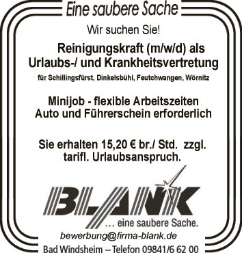 als Urlaubs-/ und Krankheitsvertretung für Schillingsfürst, Dinkelsbühl, Feuchtwangen, Wörnitz