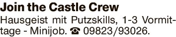 Join the Castle Crew Hausgeist mit Putzskills, 1-3 Vormittage - Minijob.