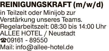 REINIGUNGSKRAFT (m/w/d) in Teilzeit oder Minijob zur Verstärkung unseres Teams.